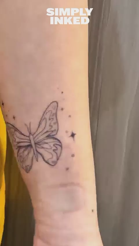 Simply Inked Waterless Semi-Permanent Tattoos are painless, and cost-effective way to get Inked. These tattoos take upto 24 hours to develop and appear on you skin. The tattoo lasts 7 to 14 Days (Depending upon the skin type) and looks completely real.