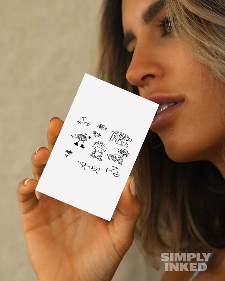 Simply Inked Semi-Permanent Tattoos are a painless, and cost-effective way to get Inked. These tattoos take up to 24 hours to develop and appear on your skin. The tattoo lasts 7 to 14 Days (Depending upon the skin type) and looks completely real. Choose from hundreds of pre-made designs.