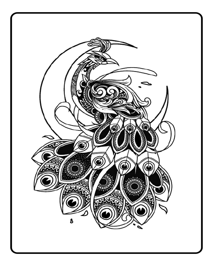 Moon & Peacock Semi-Permanent Tattoo