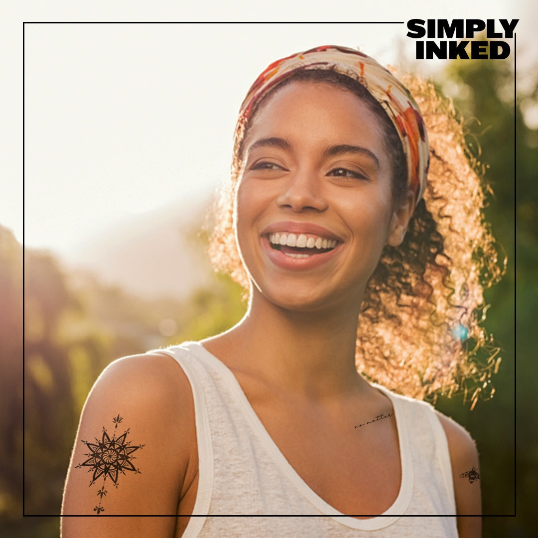 Temporary Tattoos: Perfect for a quick style change, our temporary tattoos transfer directly onto your skin in seconds and last for 2-3 days. Ideal for special events or a weekend outing, these tattoos can be easily removed with a gentle exfoliation.